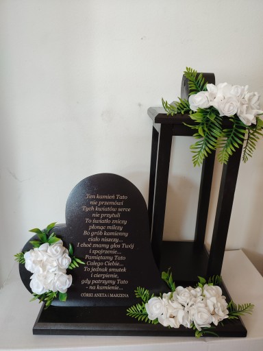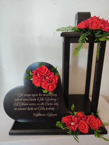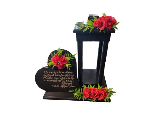 Serce na dużej podstawie na pomnik z drewnianym lampionem CZARNE