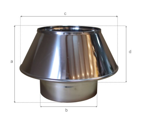 Dyfuzor nasada na komin wykonany ze stali nierdzewnej, Ustnik kominowy montowany na wewnątrz rury ceramicznej. Rura ustnika posiada wybrzuszenie, dzięki temu ustnik ciasno siada w rurze ceramicznej Nasada chroni komin przed warunkami atmosferycznymi oraz nadaje estetycznego wyglądu. Wspomaga przewietrzanie systemu kominowego m in. pomaga w odprowadzaniu wilgoci.