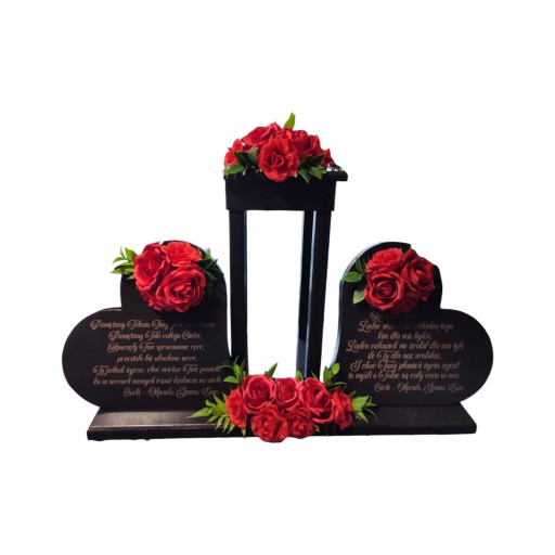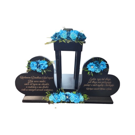 Dwa serca na dużej podstawie z drewnianym lampionem
