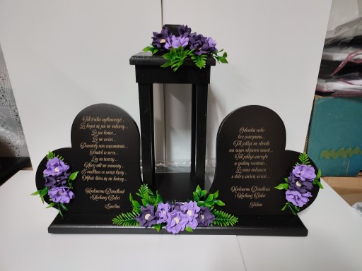 Napisy są grawerowane, koloru naturalnego, na dekoracjach białych są ciemne, na dekoracjach czarnych dają złudzenie złotych. Grawery wykonuję ja, dlatego nagłówki, wiersze/sentencje, podpisy są dowolne. Nie ma ograniczeń w ilości wyrazów, ale należy pamiętać, że im więcej tekstu tym mniejsza czcionka. Przy zakupie proszę pamiętać o podaniu tekstu do graweru, jeśli go Państwo nie podadzą wygraweruję to co jest na pierwszym zdjęciu z nagłówkiem ( na miniaturze) ale bez podpisu.