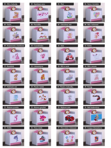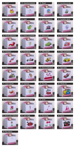 - Kolorowa naklejka - fronty szafki zalaminowane po całości nadrukiem do wyboru.