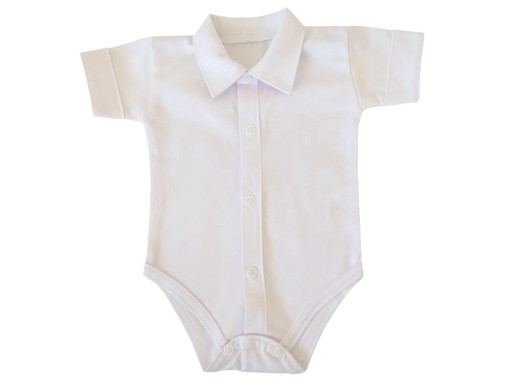Koszulo-body w kolorze białym z kołnierzykiem, z krótkim rękawkiem. Klasyczne, schludne i eleganckie, idealnie nadaje się na imprezę czy święta.