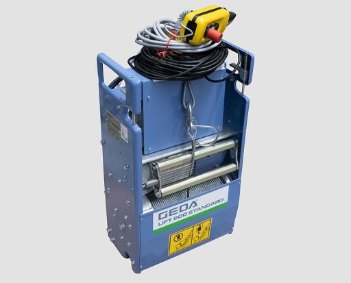 Seria Geda Lift w wersji Standard to wytrzymały i niezawodny napęd windy dekarskiej, który dzielnie transportuje nawet do 200 kg. Długość toru jezdnego może wynieść do 21,5m ( w wersjach specjalnych nawet do 41m) co pozwala swobodnie na pracę przy różnych budynkach. Niezwykle poręczny i praktyczny zestaw windy dekarskiej GEDA STANDARD przyspieszy i usprawni pracę przy budynkach niskiej zabudowy oraz domach jednorodzinnych. Zajmuje niewiele miejsca, co sprawia, że poradzi sobie praktycznie w każdych miejscu pracy. Po złożeniu winda jest wygodna w przechowywaniu i łatwa w transporcie.