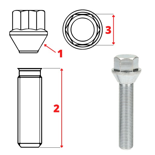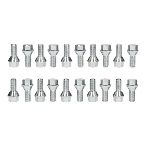 Śruby produkowane są ze stopu metalu, gwarantującego odpowiednią wytrzymałość połączenia gwintowego. Użytkownik może bez obaw zamocować koło, stosując zalecaną przez producenta pojazdu siłę podczas jej dokręcania.