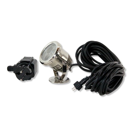 Uniwersalny reflektor QL-25 LED ze stali nierdzewnej na podstawce. Reflektorek przystosowany jest do pracy pod wodą jak również poza wodą. Przeznaczony jest do podświetlania światłem skupionym fontann, kaskad lub mostków. Może być również używany do oświetlania elementów małej architektury ogrodowej.
