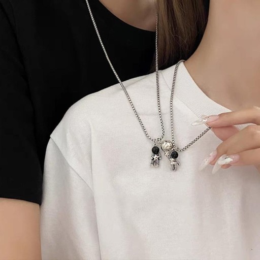 Naszyjnik wyróżnia się fantastycznymi figurkami astronautów z magnetycznym sercem