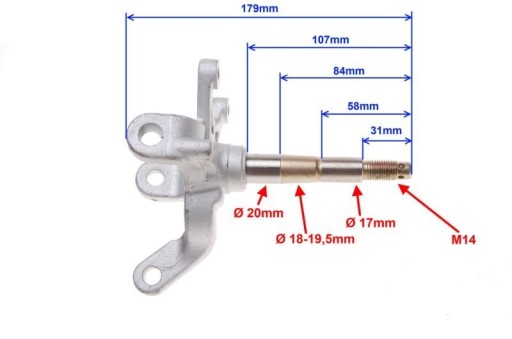 długość osi: 106mmśrednica osi:20x22 ; 17x25gwint osi: M14x30mmśrednica pod uszczelniacz: 31mmrozstaw otworow mocujacych zacisk: 64mm Fi8rozstaw wewnetrzny mocowania pod końcowki wahaczy: 82mmrozstaw zewnetrzny mocowania pod końcowki : 108mm