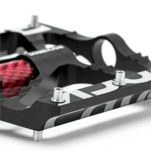 Pedał wyposażony jest w 5 metalowych pinów (jedna strona). Dodatkowo specjalne rzeźbienie na powierzchni pedała zwiększa właściwości antypoślizgowe.