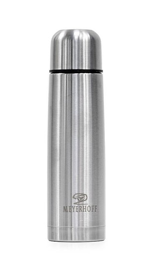 Termos renomowanej marki Meyerhoff został wykonany z wysokiej jakości stali nierdzewnej z izolacją próżniową, która pozwala na długo utrzymać temperaturę ciepłych oraz zimnych napojów wewnątrz termosa. Praktyczny system otwierania i zamykania za pomocą odkręcanej pokrywki sprawia, iż korzystanie z termosa jest łatwe i wygodne. Pokrywka świetnie sprawdzi się jako kubek. Idealny na różnego rodzaju wycieczki i podróże. Całość wykonana jest z przyjaznych środowisku materiałów i przystosowana jest do kontaktu z napojami. Nie nadaje się do mycia w zmywarce.