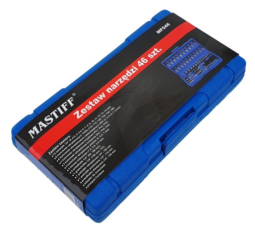 Zestaw kluczy nasadowych składa się z 46 elementów, wykonanych z wysokiej jakości stali chromowo-wanadowej.