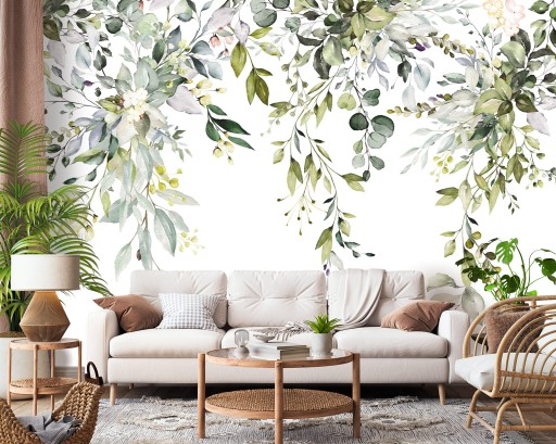 ФОТОБОИ 3D РАСТЕНИЯ ЛИСТЬЯ для гостиной на заказ.