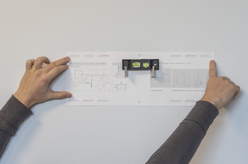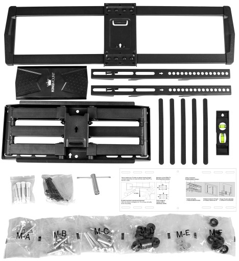 - W zestawie uniwersalny komplet śrub montażowych do telewizora oraz komplet wkrętów i kołków do ściany, poziomica
