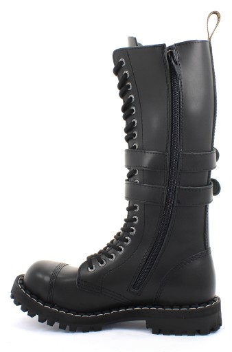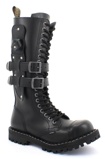 ЧЕРНЫЕ СТАЛЬНЫЕ БОТИНКИ С ЧЕХОЛОМ ДЛЯ НОЖЕЙ И МОЛНИИ НА 20 ОТВЕРСТИЙ