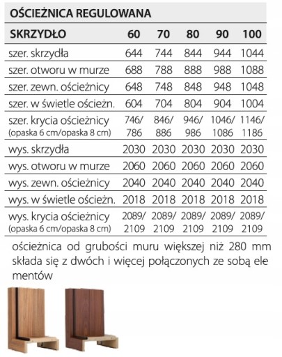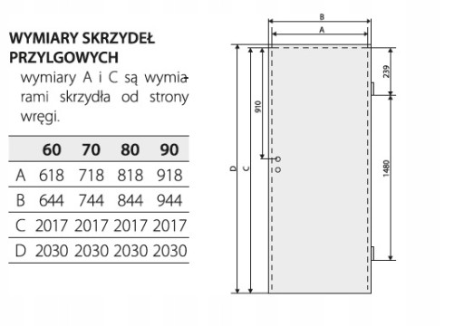- Wymiar skrzydła 60-70-80-90 do wyboru