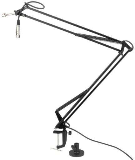 Statyw mikrofonowy z ruchomym ramieniem, do montażu pulpitowego.