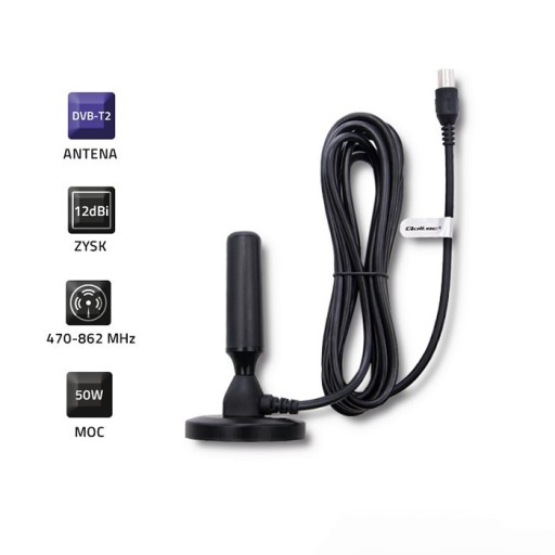 - Antena DVB-T2 z podstawką magnetyczną do montażu na dachu auta