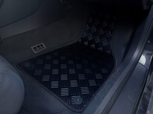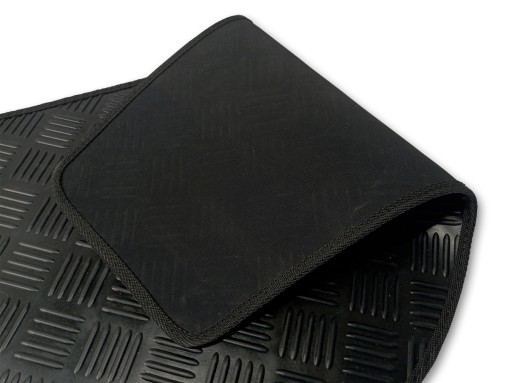 Poniżej przedstawiamy dywaniki gumowe o grubości ok 3-4 mm, obszywane mocną i trwałą czarną lamówką materiałową. Dywaniki zaprojektowane i wykonane są starannie przez firmę LASOTA, dopasowane do kształtu podłogi Twojego samochodu. Spód dywaników pokryty jest warstwą szorstkiej gumy zapobiegającej przesuwaniu się.