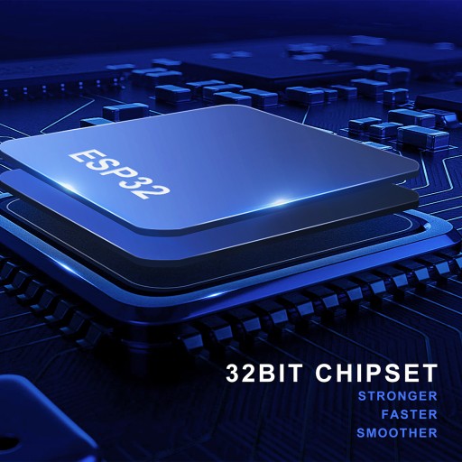Ray5 jest zbudowany na chipsecie ESP32, który działa z częstotliwością 240 MHz. Szybsze i wydajniejsze niż porównywalnie wyposażone maszyny z 8-bitowym chipsetem.