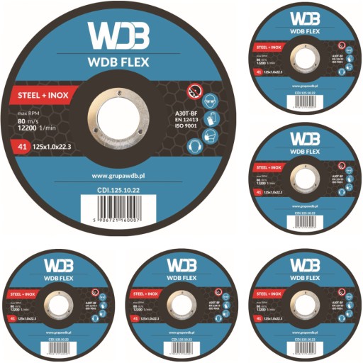 WDB FLEX to renomowana POLSKA marka tarcz do stali wybierana przez wielu klientów w kraju i za granicą. Nasze tarcze charakteryzują się wydłużoną trwałością oraz wysoką jakością materiału i wykonania. Produkty marki WDB FLEX spełniają międzynarodowe wymogi bezpieczeństwa, dzięki czemu zaufało nam już tysiące użytkowników w całej Europie. Tarcze marki WDB FLEX charakteryzują się wysoką wydajnością i długim okresem trwałości.
