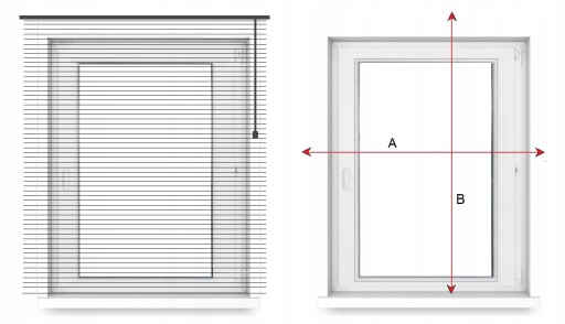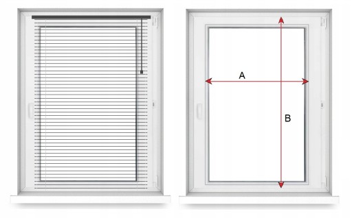 - Dokładny wymiar żaluzji (szerokość A oraz wysokość B ) - będzie to wymiar całkowity żaluzji