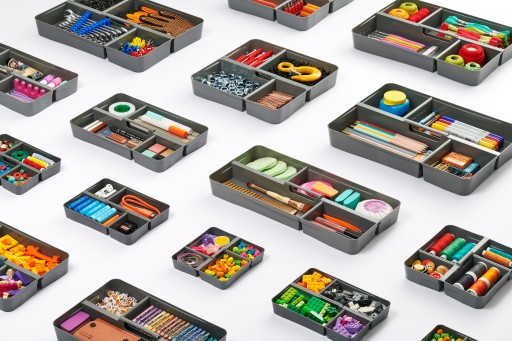 ☑️ pojemnik z praktycznym insertem do sortowania drobiazgów, z pokrywą i klipsami