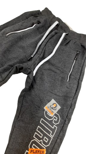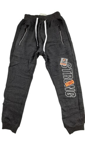 Modne OCIEPLANE chłopięce spodnie dresowe w kolorze SZARYM z KOLOROWYMI dodatkami.