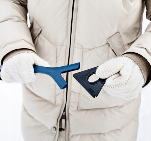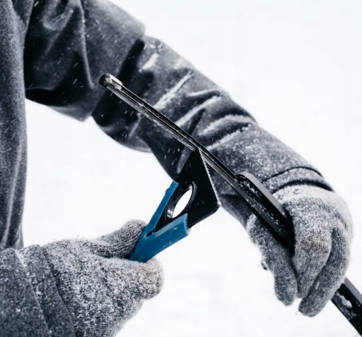 Po wyjęciu skrobaka z uchwytu mamy trzy ostre ostrza skrobaka co znacznie wydłuża żywotność skrobaczki. W skrobaku znajduje się również nacięcie, które ułatwia czyszczenie wycieraczek przedniej szyby. Skrobaczkę do lodu można łatwo przechowywać w bocznej kieszeni drzwi samochodu lub w schowku.