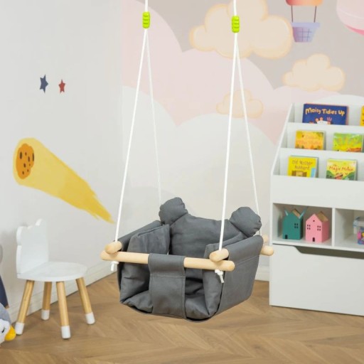 Słoneczna huśtawka dla maluchów z pasem bezpieczeństwa do 80 kg szara Ta huśtawka dziecięca Outsunny zapewni Twojemu dziecku niesamowitą zabawę! Bawełniana poduszka na siedzisku i oparciu krzesełka zapewnia wygodną pozycję siedzącą, a pas bezpieczeństwa zabezpiecza dziecko przed wypadnięciem. Solidna drewniana rama i mocna lina mogą z łatwością utrzymać ciężar do 80 kg. Szybko znajdź optymalną wysokość huśtawki dla swojego małego pilota, indywidualnie dostosowując długość liny. Dziadek: ✔ Idealny do użytku na zewnątrz, a nawet w pomieszczeniach z wystarczającą ilością miejsca do huśtania się ✔ Poszewka na poduszkę ze 100% bawełny i wyjątkowo miękka wyściółka dla wygodnego siedzenia ✔ Pas bezpieczeństwa i gładka drewniana klamra zapewniają dodatkowe bezpieczeństwo ✔ Rama z drewna topoli jest stabilna i bezpieczna i może wytrzymać do 80 kg ✔ Liny do huśtawek mają regulowaną długość ✔ Wymagany montaż