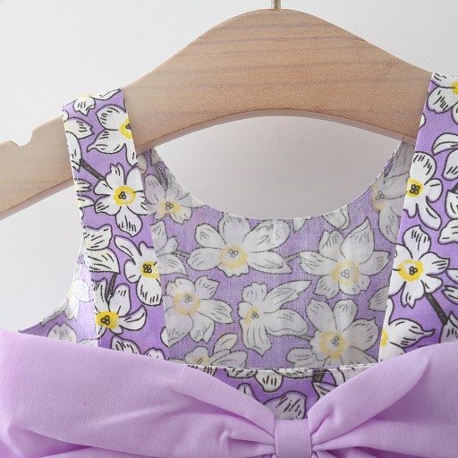 Sukienka fioletowa w białe kwiatki z uroczym kapelusikiem.
