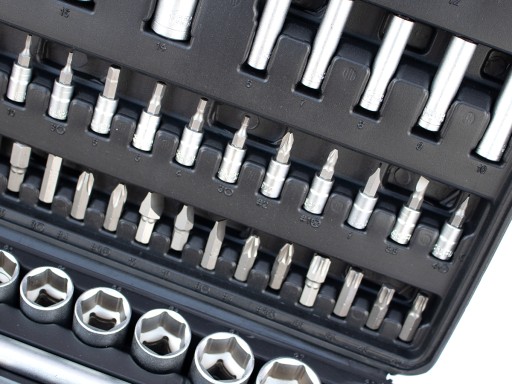 Bardzo solidny zestaw podstawowych kluczy dla mechanika oraz domowego majsterkowicza. Zawiera w sobie to, czego najczęściej potrzebujesz w domu. Dzięki mocnemu organizerowi w formie walizki z przegrodami, jest łatwy do przechowywania w domowej szafce.