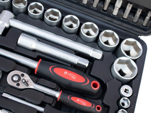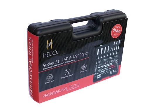 Kompleksowy pakiet narzędzi i akcesoriów HedoTools jest zamknięty w wytrzymałej i praktycznej walizce. Zestaw ten idealnie sprawdza się w pracach domowych, montażowych czy drobnych naprawach warsztatowych.