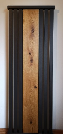 Deska montowana w tym pięknym grzejniku wykonana jest ze szlachetnego drzewa jakim jest DĄB przyklejona na podkładzie w celu uniknęcia pękania . Deska jest zabezpieczona olejem dzięki temu jest odporna na wilgoć.