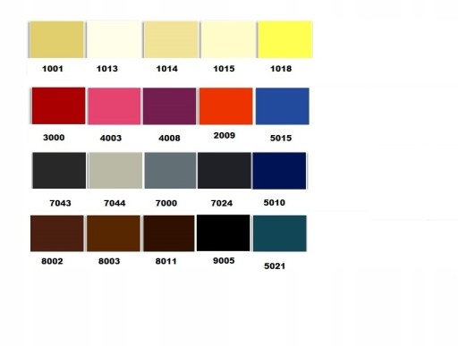 W cenie wybrany kolor z palety ral zamieszczonej obok