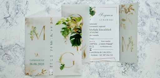 Zaproszenia ślubne MONSTERA GEOMETRYCZNE z KALKĄ