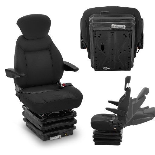 Komfortowe siedzisko ma wymiary 61,5 x 53 cm, a oparcie wysokość 85 cm. Fotel do ciągnika został wyposażony w pas bezpieczeństwa, podłokietniki i regulowany zagłówek. Wypełniono go w środku odporną na deformacje pianką PU.