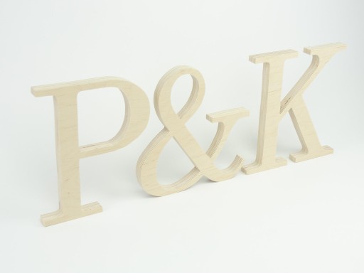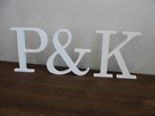 Inicjały ślubne wykonane z sklejki brzozowej pomalowane lub w stanie surowym, mają ok 19,5 cm wysokości i grubości 18mm - są wolnostojące!