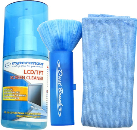 Esperanza Żel Ściereczka z Mikrofibry i Pędzelek Zestaw Czyszczący do Monitorów i Telewizorów LCD, LED, OLED