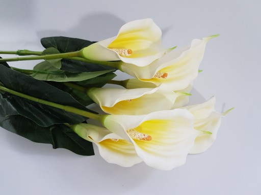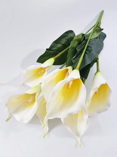 Przedmiotem sprzedaży jest bukiet sztucznych kwiatów - kalia w kolorze białym z dodatkiem żółtego,