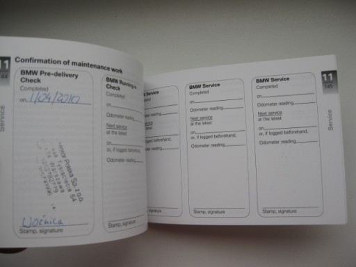 Książeczka zawiera również rubryki serwisowe, z których wypełnione zostały: