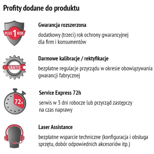 Przyrządy pomiarowe geo-FENNEL od ponad dwudziestu lat są z powodzeniem używane na polskich budowach. Laser liniowy krzyżowy Geo6X GREEN SP jest objęty 24 ochroną (36 miesięcy po rejestracji). Każdy egzemplarz przed wysyłką do sklepu przechodzi w laboratorium diagnostycznym wstępny przegląd techniczny i kontrolę dokładności. Jest gotowy do pracy natychmiast po otwarciu firmowego opakowania.