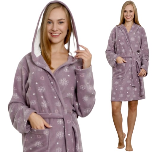 ЖЕНСКИЙ ФЛИСОВЫЙ ХАЛАТ С МЯГКИМ, ТЕПЛЫМ КАПЮШОНОМ