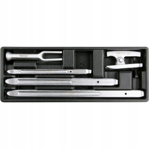 Wkład do szuflady zawierający zestaw łyżek do opon oraz dwa ściągacze do końcówek drążków kierowniczych.