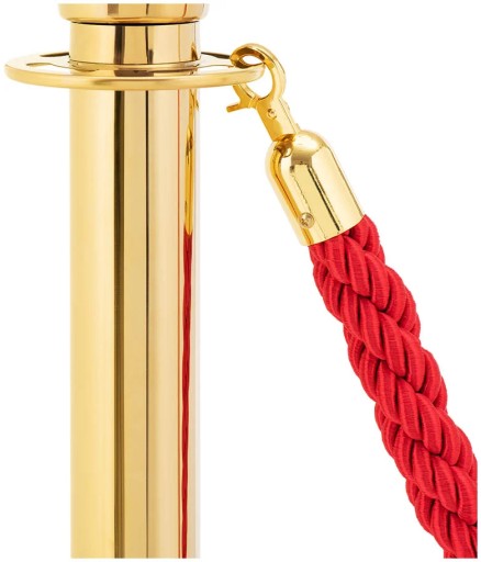 Aby zapewnić bezpieczne oparcie, użyj podstawy betonowej o średnicy 320 mm. Wykonane ze stali nierdzewnej słupki mają średnicę 51 mm i imponują wysoką stabilnością. Powierzchnie w złotym kolorze zapewniają atrakcyjny wygląd. Lina barierowa ma długość 150 cm. Użyj pełnej długości lub skróć ją, jeśli to konieczne, rozstawiając słupki. W przypadku większych odległości wystarczy połączyć ze sobą kilka stojaków, tworząc kordon hotelowy.