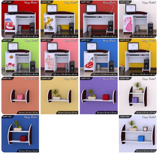 Mogą Państwo wybierać spośród prawie 90 modeli mebli (szafki nocne, kufry na zabawki, komody, regały, szafy, biurka, półki) przeznaczonych do dowolnego zaaranżowania pokoju dziecka.
