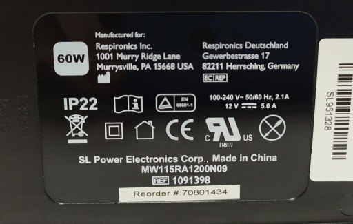 Oryginalny stabilizowany impulsowy zasilacz Philips Respironics 12V 5A 60W, 7.4x5.0