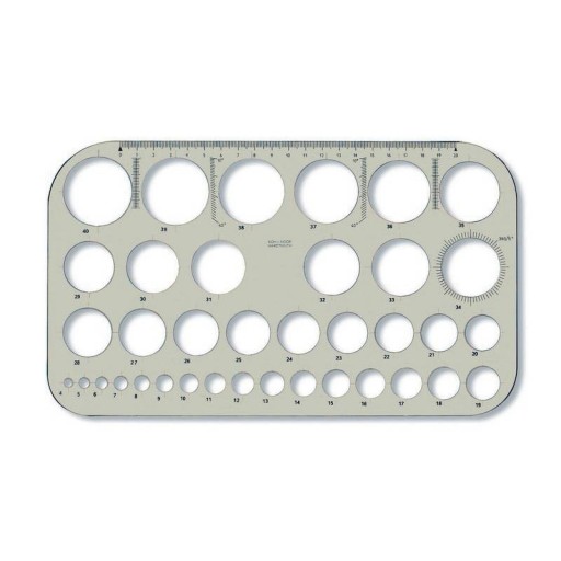 SZABLON KOŁOWY Z37 KKO KOH-I-NOOR Szablon umożliwiający precyzyjne kreślenie łuków o promieniach od 1 do 40 mm oraz kół o promieniach od 0,8 do 2,5 mm. Wykonany z dymionego tworzywa sztucznego. Posiadający wypustki zabezpieczające przed rozmazywaniem rysunku. Cena za 1 sztukę. EAN:8593540110640
