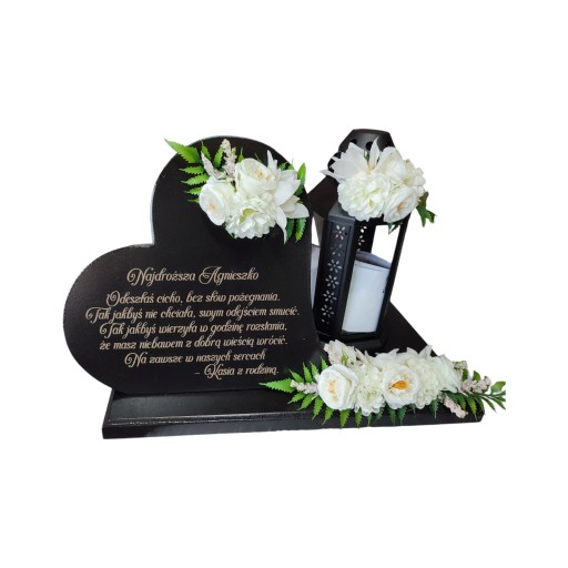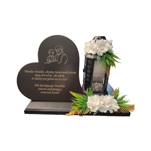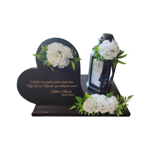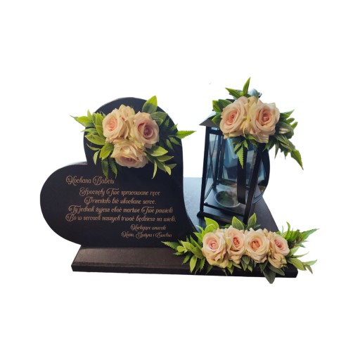 Serce na dużej podstawie na pomnik z metalową latarenką. Do latarenki mieści się mały wkład na baterie