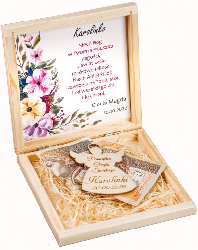 - Grawerowane pudełko z życzeniami wewnątrz