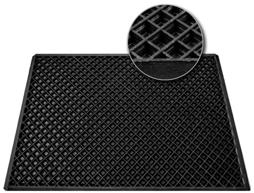 - Wycieraczka odporna na wszelkie warunki atmosferyczne, o właściwościach antypoślizgowych, które są potęgowane przez strukturę grubej kraty.