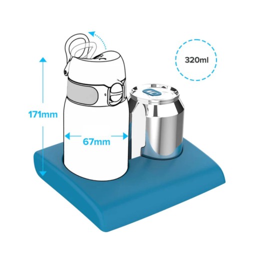 Wymiary odpowiednie dla większości uchwytów na kubek. Zintegrowana rączka do noszenia lub przytroczenia, którą można schować w wieczku. Zakrzywiony profil wieczka zapobiega upadkom i ułatwia trzymanie oraz wyciąganie z torby. Wielkość idealna dla pewnego chwytu dłonią.